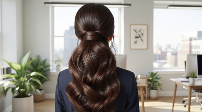 23 Business Casual Hairstyles Half Up Low Ponytail Textured Waves Versatile