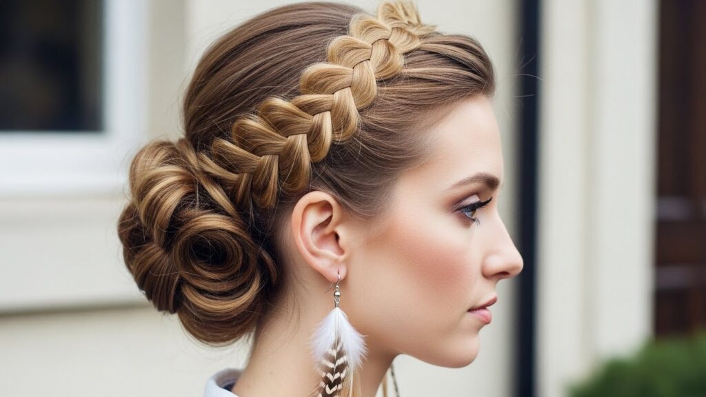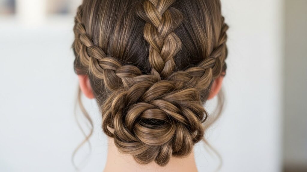 For a style with incredible hold and stunning detail, combine a Dutch braid with a classic low bun. Begin a Dutch braid (an inverted French braid) at the crown, braiding it along your hairline or straight back. Once you’ve incorporated all the hair from the top and sides, continue with a regular braid for the remaining length. Then, twist the braid into a neat or messy low bun and pin securely. This style keeps every strand in place while looking intricately beautiful.