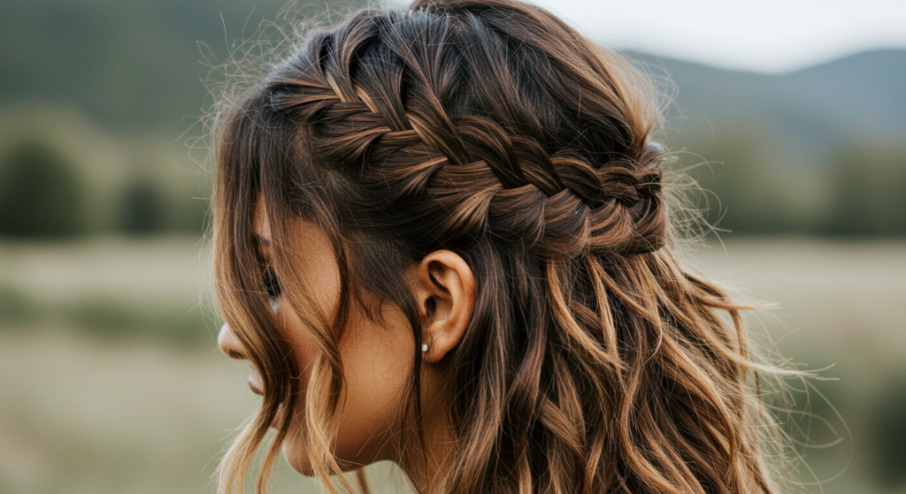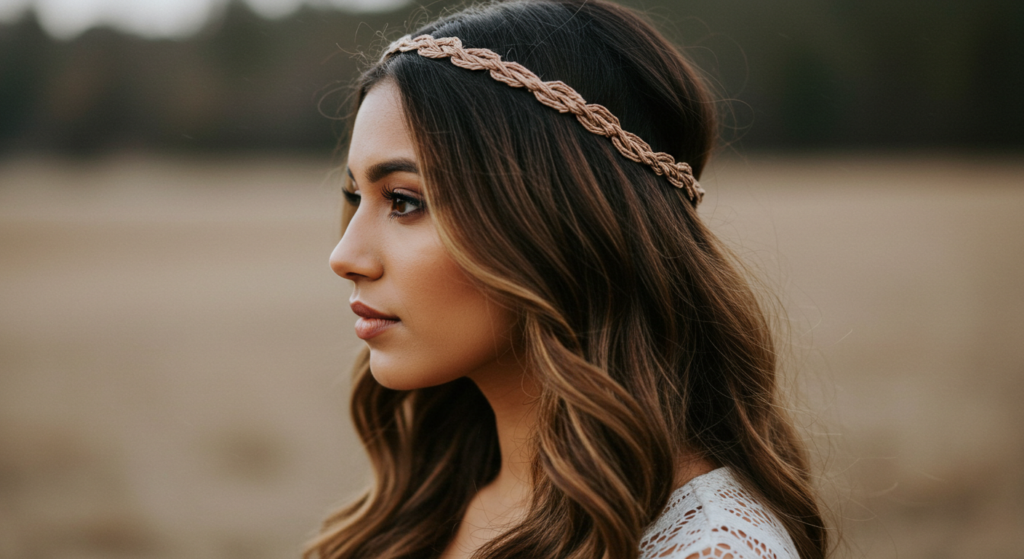 A braided headband adds a boho touch to any look. Take a small section from the front, braid it, then pin it across your head like a headband. The rest of your hair can be down or in a ponytail.