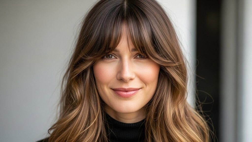 Curtain bangs are a movement-based style by design. Centered with a deep part, they are meant to gently graze the temples and cheekbones, not sit stiffly on the forehead. Their magic is in the way they swing to the side with head movement and can be easily brushed back and forth. They require a light touch with styling—a round brush blow-dry followed by a light mist, not a flat iron clamp-down. The more they blend into the rest of your hair’s flow, the better.