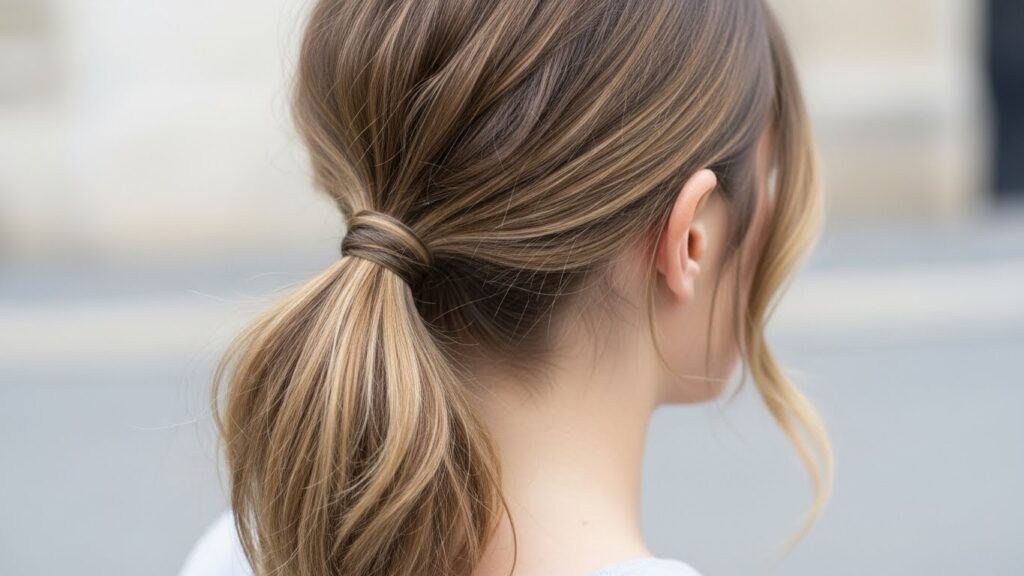 Pro Tip: For the most effortless version, use a small, clear elastic or a mini claw clip. After securing, pull gently at the sides near your temples to loosen the style and create soft volume.