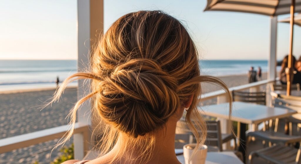 Embrace the texture! This isn’t about sleek perfection. Start with day-old waves or add some texturizing spray. The goal is a loose, voluminous loop where the pieces aren’t perfectly tucked.