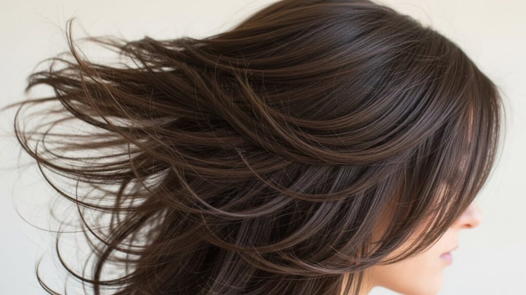 Inspired by classic 70s styles, feathered layers that focus on the ends of the hair can create a flattering, wide silhouette at the bottom. This technique involves thinning or “feathering” the very ends of the hair to make them wispy and light. This outward flick or soft flip prevents hair from clinging to the chin, instead encouraging it to float away from the face, creating the illusion of width.