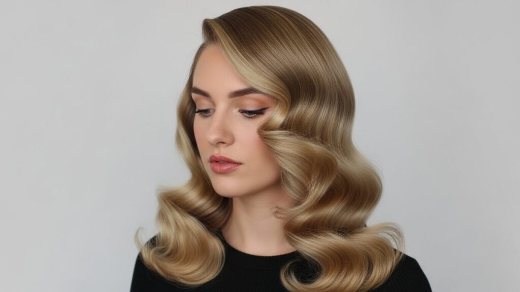 Use a large-barrel curling wand or velcro rollers to create soft, bouncy waves. Focus the curl pattern from your ears downward, keeping the roots relatively smooth or with light volume.