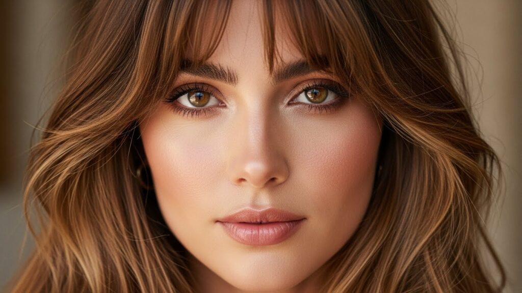 Modern curtain bangs—which part in the middle and frame both sides of the face—are particularly perfect. They create a soft, diffused edge that beautifully narrows the forehead and highlights your eyes and cheekbones.