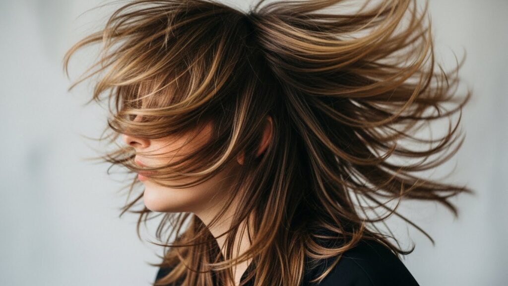 The modern shag is a layered masterpiece, featuring disconnected, feathered layers throughout, often paired with curtain or wispy bangs. It’s a texture-heavy, rock-and-roll inspired cut that brings incredible movement and personality to long hair.