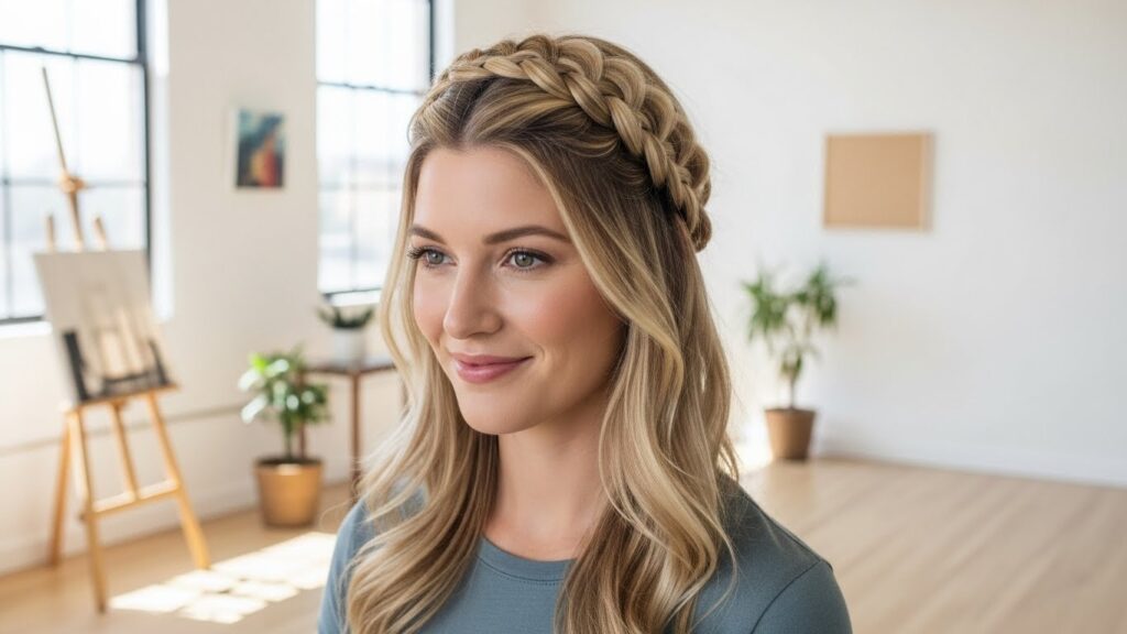 A braided crown, or halo braid, is a beautiful way to keep hair off your face while incorporating a touch of bohemian-inspired elegance. This style involves creating two braids—one on each side of your head—and pinning them across the crown like a tiara. It works best on second-day hair, which has more texture and grip. You can opt for a classic three-strand braid or a more intricate Dutch braid for added detail.