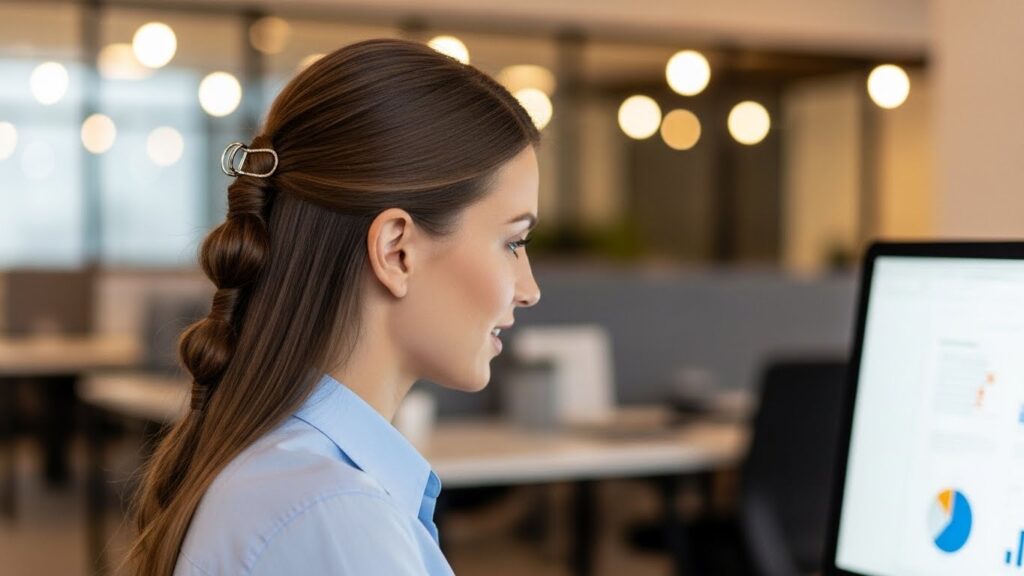 This hairstyle works beautifully for everything from corporate environments to more creative workplaces. It’s versatile, feminine, and excellent for days when your outfit is more structured, as it adds a balancing softness.