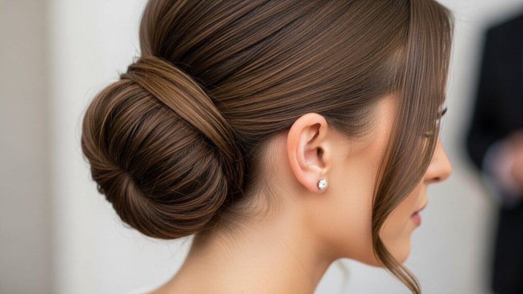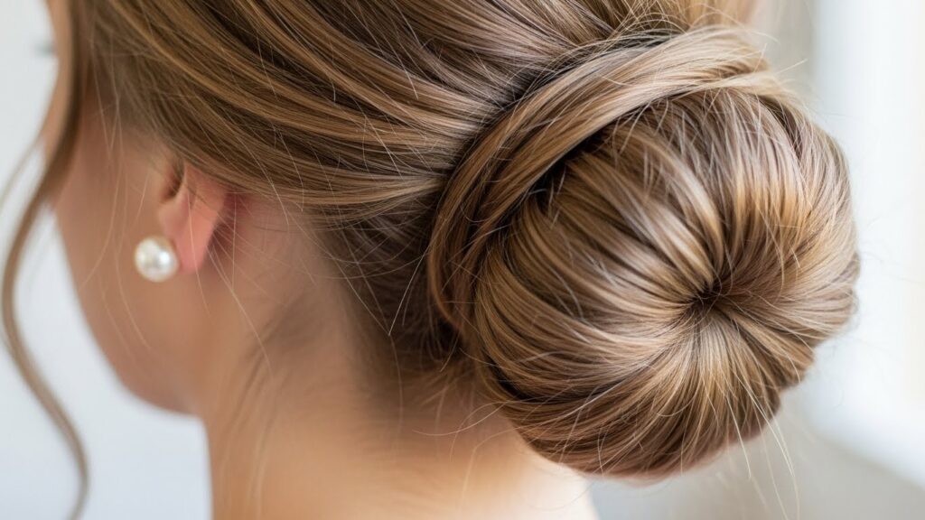 Don’t let the name fool you—this is messy by design, and it’s the epitome of effortless chic. The goal is a bun that looks like you casually twisted it up, with soft tendrils framing your face and a shape that’s full and textured, not tight and perfect. It’s approachable, sexy, and incredibly quick to achieve. Start with second-day hair or add a bit of texturizing spray for grip. Pull your hair into a high or low ponytail, twist it loosely, and wrap it around the base, securing with pins. The key is to gently pull out face-framing pieces and loosen the bun for that romantic, lived-in feel.