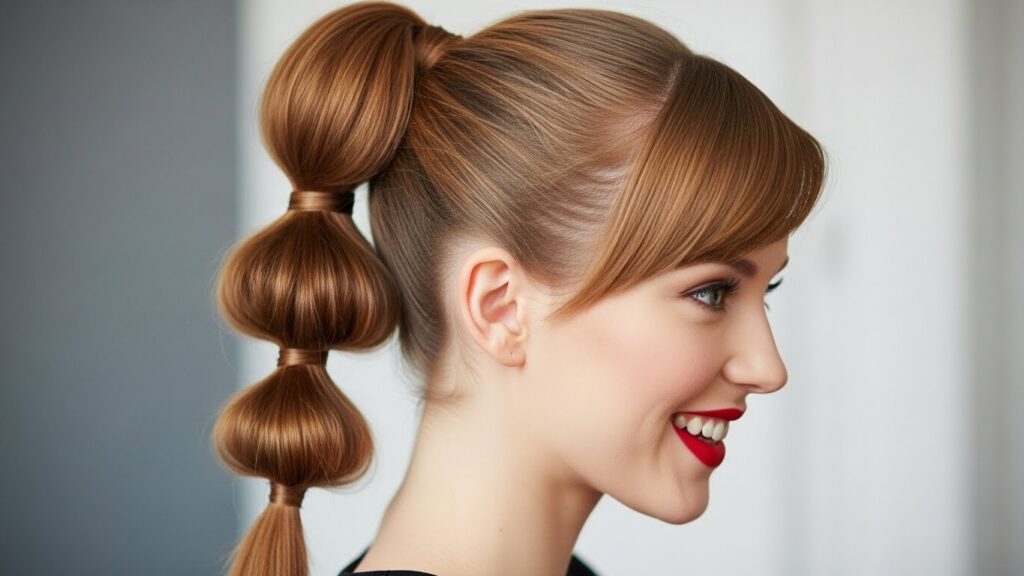 Playful, modern, and undeniably fun, the bubble updo adds a youthful and flirty touch to your date night look. Start with a high ponytail. Then, at even intervals down the length of the ponytail, place hair elastics, spacing them a few inches apart. The magic happens next: gently pull and puff out the hair between each elastic to create “bubbles.” You can leave the tail out or twist it into a small bun. This style is fantastic for adding volume and a touch of whimsical romance to your ensemble.