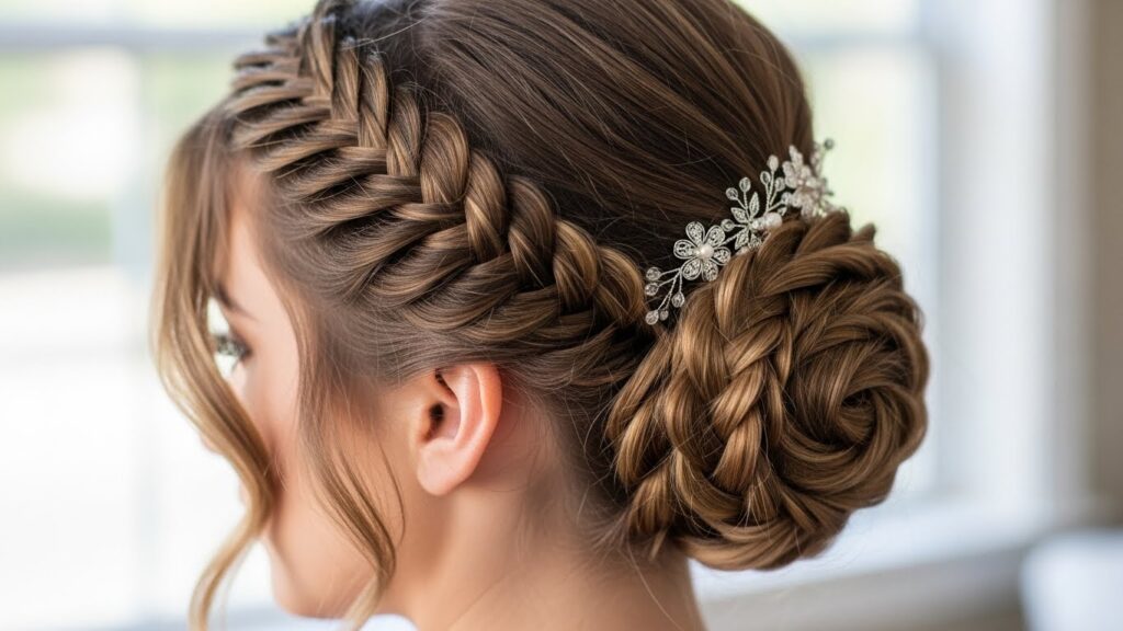 This is one of the easiest yet most stunning romantic updos to master. It involves creating two large twists or rope braids and pinning them together into a low, intricate-looking bun. It’s softer than a braid and has beautiful texture. Simply divide your hair into two sections, twist each one tightly, then twist them together around each other and pin at the base of your skull. Leave the ends out to flutter or tuck them in for a neater finish. The result is a detailed, romantic updo that looks far more complex than it actually is.