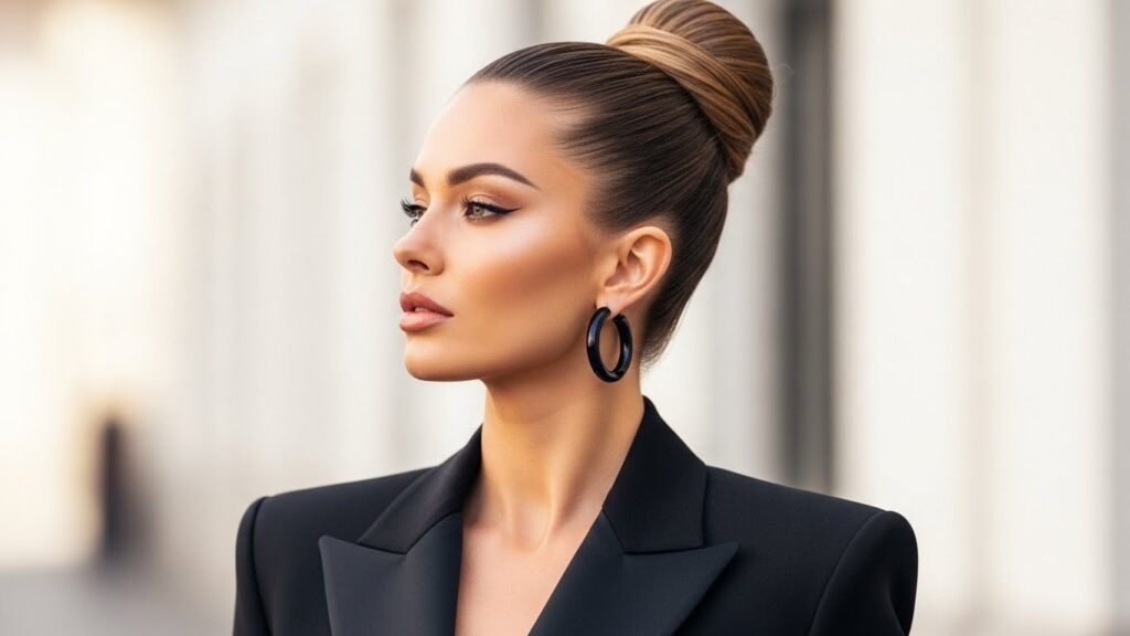 For a look that is sharp, modern, and intensely chic, the high ballerina bun is a powerful choice. When executed with sleekness, it highlights your facial features and neckline beautifully. To keep it romantic, avoid making it too severe. Use a smoothing product to eliminate flyaways, but consider a soft wispy hairline or a few strategically placed loose strands. Placement is key—a bun right at the crown of the head feels youthful and elegant. This style pairs exceptionally well with statement earrings and a bold lip.