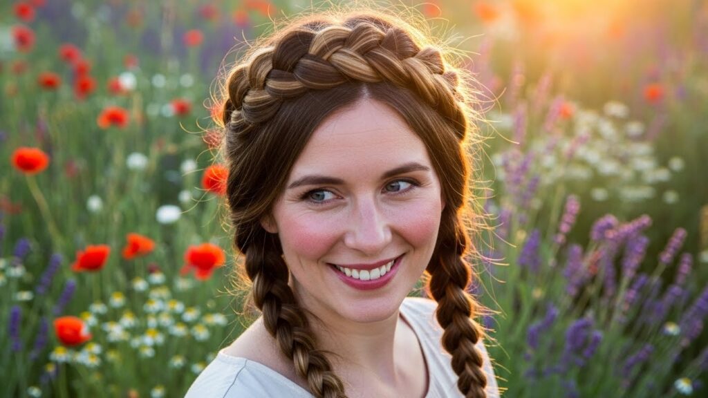 Channel your inner goddess or bohemian romance with a braided crown. This style encircles your head with a halo of braids, creating a soft, ethereal, and incredibly feminine look. It works beautifully on both long and medium-length hair. You can opt for a single Dutch braid (braided underhand for a raised effect) starting at one temple and wrapping around, or two smaller braids starting at each side and meeting at the back. Tuck the ends under and secure with bobby pins. For added romance, gently pull on the edges of the braid to pancake it, making it look fuller and softer.