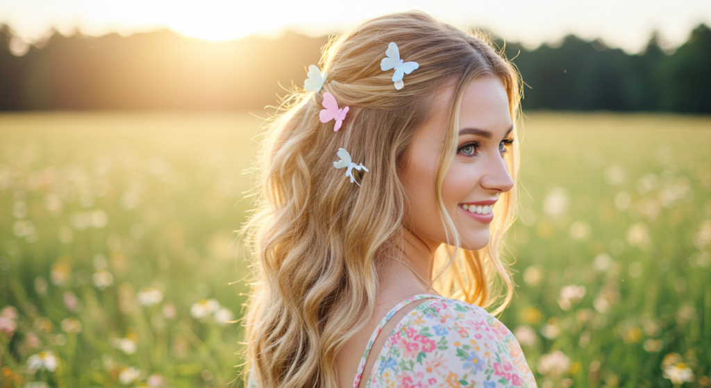 Inspired by the e-girl aesthetic, this style features a half-up, half-down look with playful accessories like butterfly clips or scrunchies. It’s youthful, trendy, and super easy to recreate.