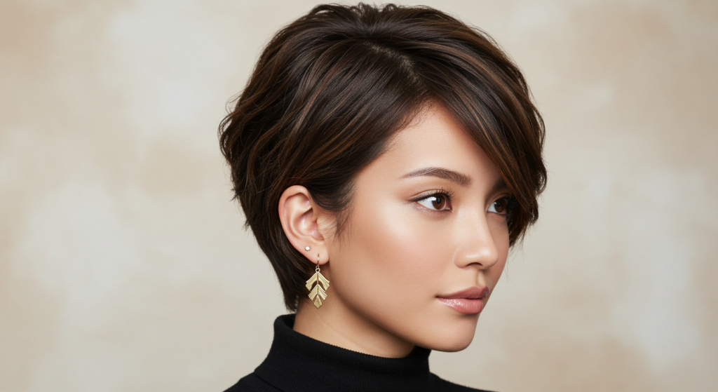 A side-swept pixie is feminine and flirty. Part your hair deeply to one side and use a light wax or cream to keep the longer pieces in place. This look works well for both casual and formal occasions.