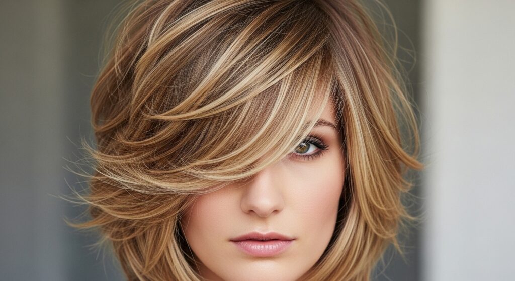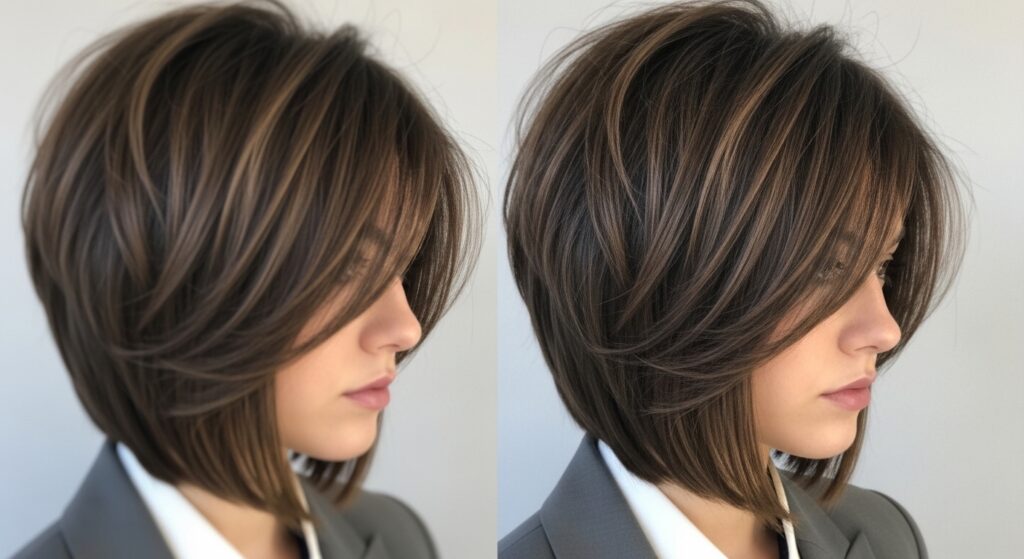 Meet the chic cousin of the shag. This look combines a blunt, one-length lob on one side with heavily layered texture on the other. It’s a masterclass in quiet luxury bob vibes but with an unexpected edge.