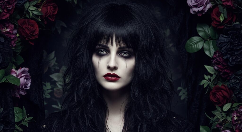 This is for my moody, poetic souls. Imagine a classic shag with longer, more dramatic layers, often paired with a deep side part and curtain bangs. It has that romantic goth hairstyles aesthetic—think Victorian heroine meets downtown rocker.