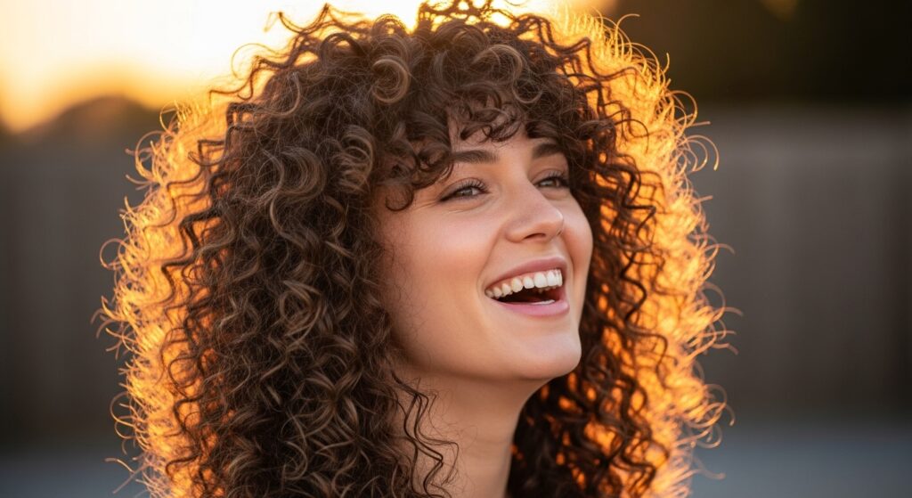 Styling is simple: apply curl cream to soaking wet hair, scrunch, and diffuse. The layers will create a beautiful, bouncy shape that feels light and modern, moving away from the classic round “curl halo.”