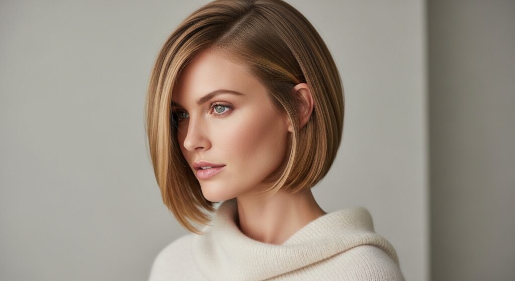 This look whispers luxury. It’s a chin-length, asymmetrical bob with very subtle, internal layers just for movement. The finish is sleek, not bushy, nailing that old money hair vibe—effortless and expensive.