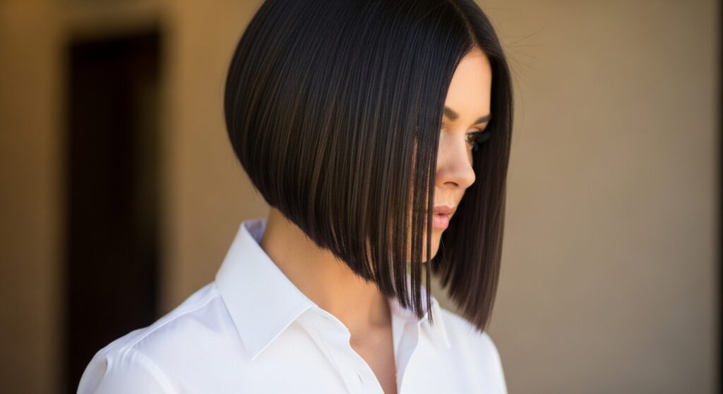 Use a flat iron to create a smooth, slightly turned-under curve. The asymmetry should look like a natural growth pattern, not a drastic chop. It’s timeless with a twist.