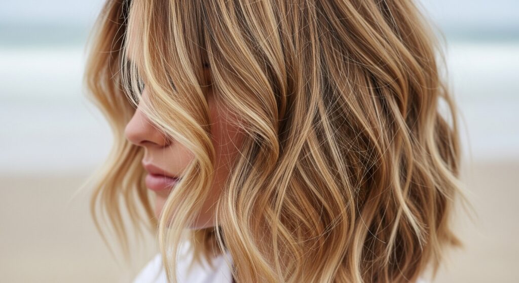 Who says angled hair can’t be beachy and relaxed? This style adds soft, textured waves that give your cut a more casual, bohemian feel.