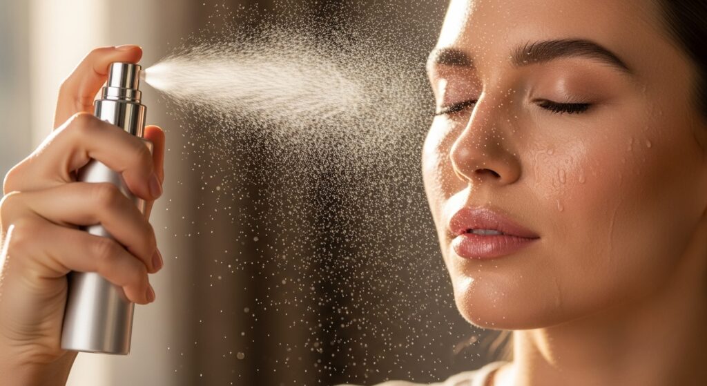 Lock in the freshness and melt all the layers together with a final spritz of a hydrating facial mist. This is the secret weapon that takes your makeup from “applied” to “lived-in.” It helps to dissolve any powdery finish, adds a hit of hydration, and gives your skin a believable, ambient dewiness. Close your eyes, spritz it in an “X” and “T” formation over your face, and let it air dry. This one simple step ensures your natural look remains skin-like and radiant all day long.