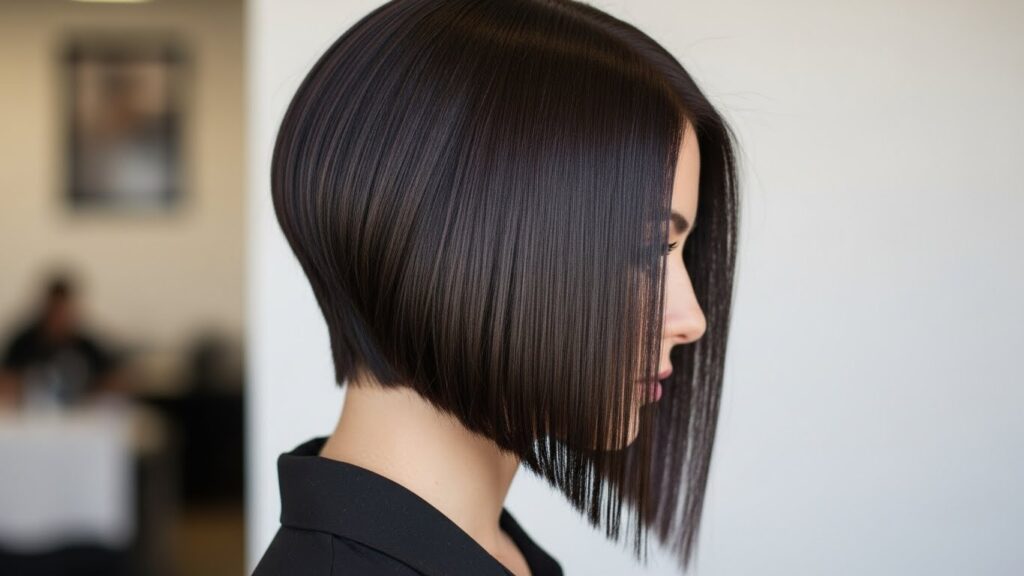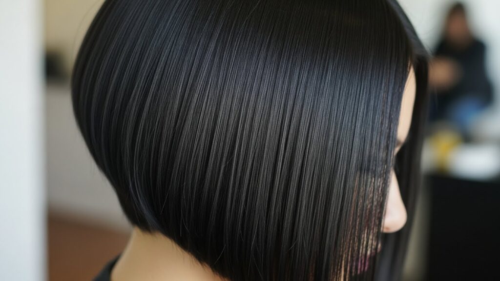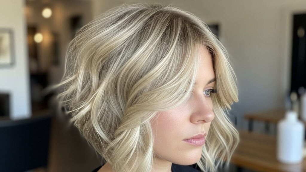An angled or asymmetrical lob is shorter in the back and gradually longer towards the front. This shape naturally builds volume at the back of the crown while the longer front pieces elongate the neck and frame the face beautifully. The angle itself is a visual trick, making hair look more dynamic and thicker than it is.