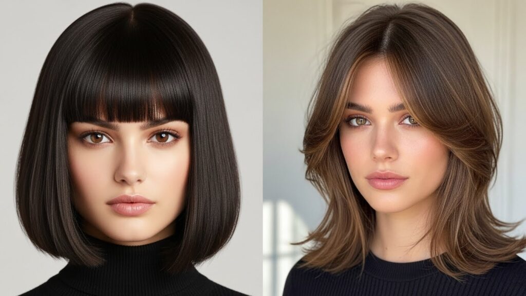 Integrating bangs with a lob creates a complete, framed look. Blunt bangs can shorten a long forehead and add a striking graphic element, great for oval and oblong faces. Curtain bangs, which blend into the face-framing layers, are softer and work for almost every shape, particularly round and square. They draw attention to the eyes and cheekbones without committing to a full fringe.