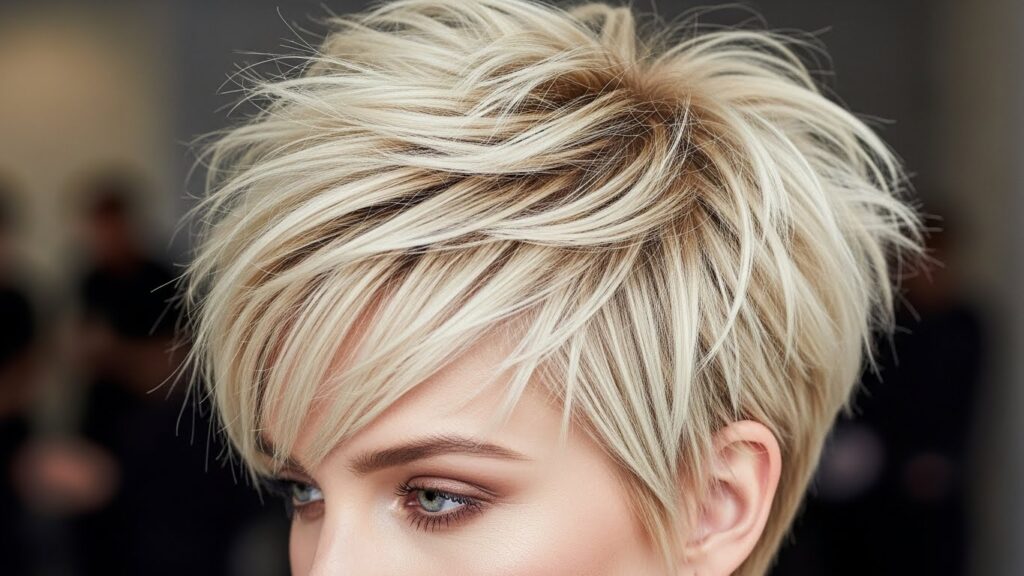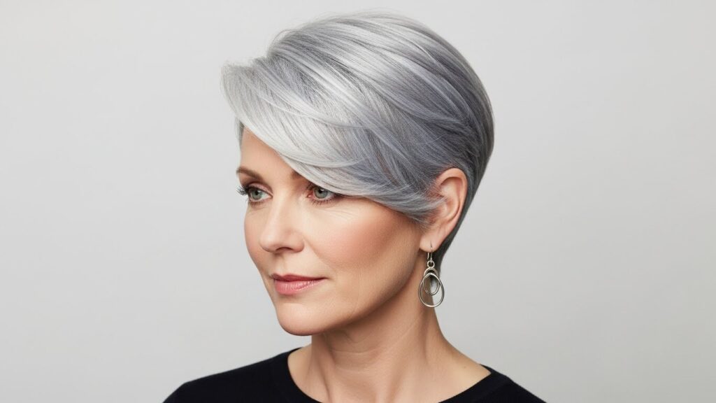 For a softer, more romantic take on the pixie, the side-swept version is ideal. This cut features a longer, textured top that is brushed to one side, creating a dramatic, face-framing sweep. This movement and the height at the crown instantly add volume and visual interest. It’s an elegant and feminine short style that is perfect for those who want a pixie but still love a bit of length to play with.