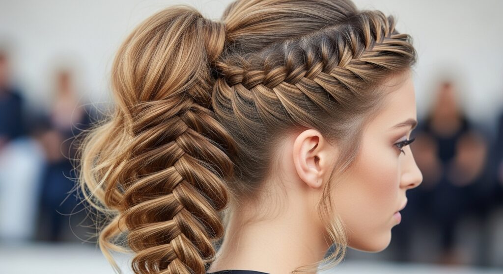Combine two classic styles for a look that’s both chic and practical. A braided ponytail is perfect for managing voluminous hair while keeping it stylish and off your face. You can opt for a simple three-strand braid on a high or low ponytail for a clean look. Or, for more volume and texture, try a fishtail or a Dutch braid. To make the braid itself look even thicker, gently pull on the outer edges of the plait after it’s secured to loosen it and create a fuller, more bohemian effect.