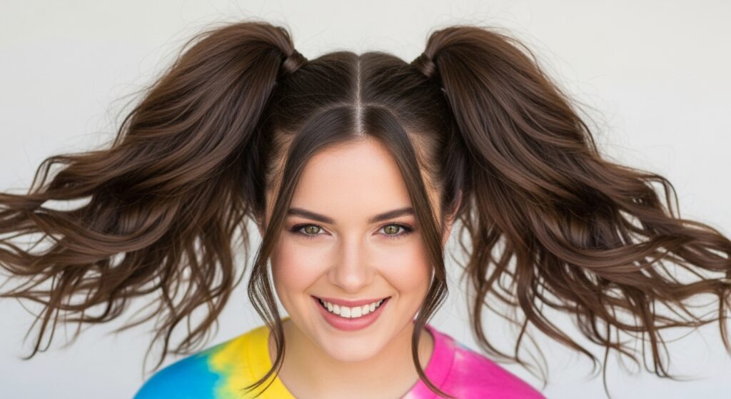 Edgy, fun, and perfect for a festival or a bold everyday look, the double ponytail is a surefire way to get noticed. Part your hair down the middle. Gather the top section of one side, from the part to about your ear, and secure it into a high ponytail. Repeat on the other side. You can leave the rest of your hair down or gather the bottom sections into two additional low ponytails. This style breaks up the bulk of voluminous hair into chic, manageable sections.