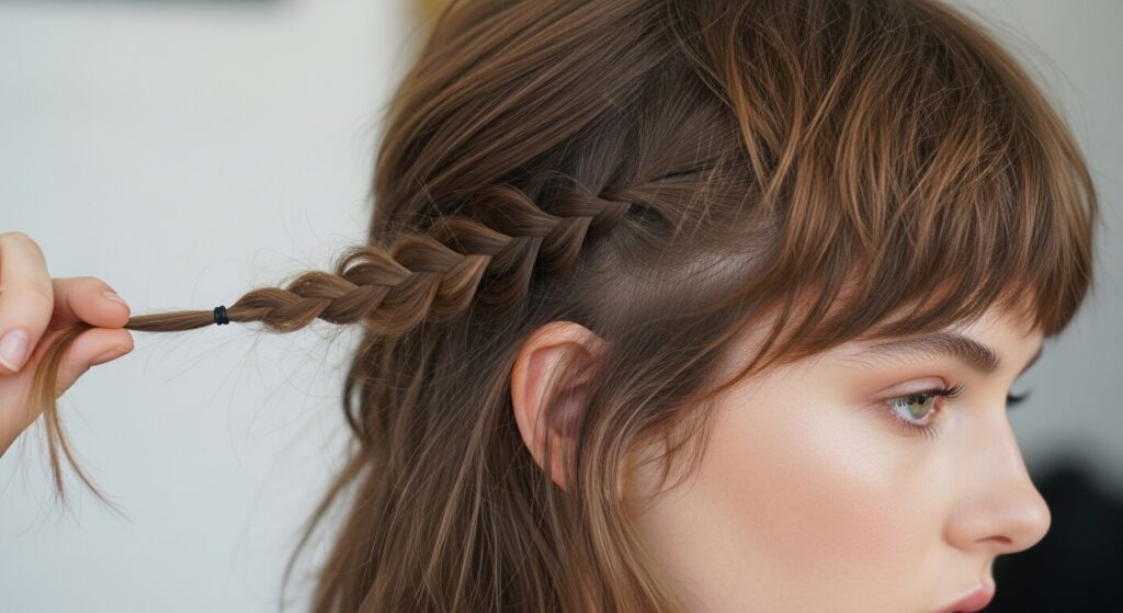 Braids aren’t just for a finished look; they’re a fantastic tool for creating texture. Before bed or on damp hair, try creating a few small, loose braids. When you take them out, you’ll be left with effortless, crimped-looking waves that add a whole new dimension to your shag’s layers. This is a perfect way to get a bohemian, undone texture without any heat.