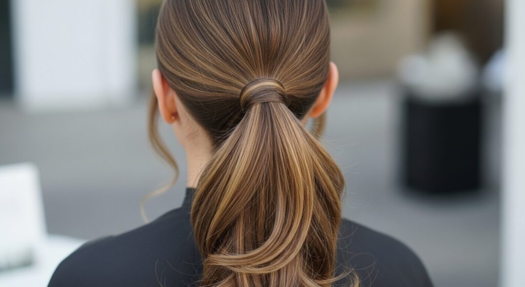 The classic black hair tie is a ponytail killer. It visually chops off your hair and looks harsh against most hair colors. The solution? Use an elastic that matches your hair color—clear, brown, blonde, or even a woven fabric one in a similar shade. For the ultimate seamless look, take a small section of hair from the underside of your ponytail and wrap it around the base, securing the end with a bobby pin hidden underneath. This creates a polished, “invisible” holder that looks expensive and intentional.