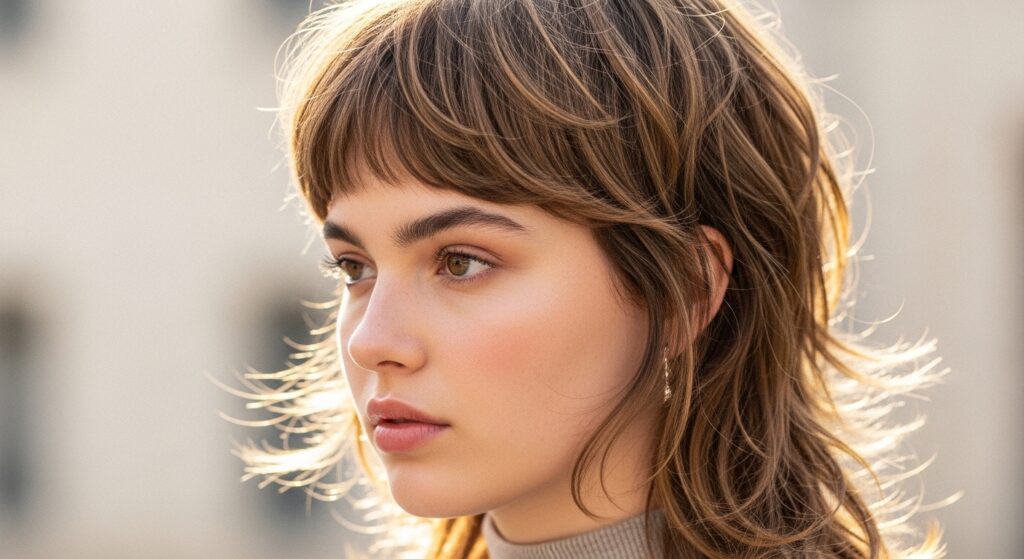 This isn’t the 80s version. It’s a blended, layered cut with a lot of texture. It fits right into the glitchy glam hair trend—a little undone, a lot cool.