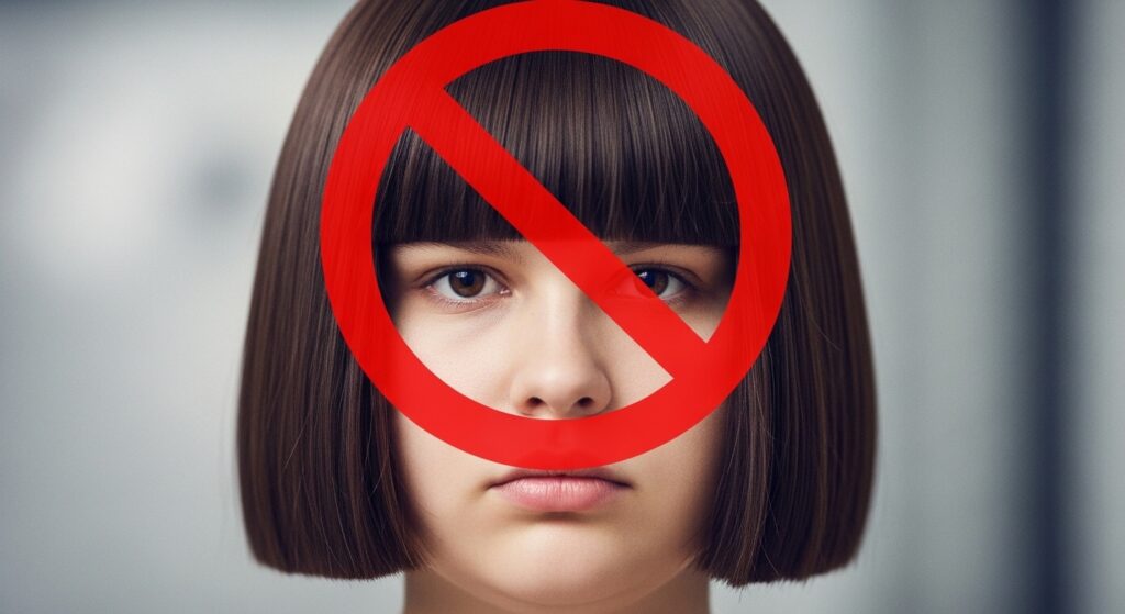 Avoid super thick, blunt bangs that cover your forehead entirely—they shorten the face. Also, too much length without layers can drag features down. Balance is key.