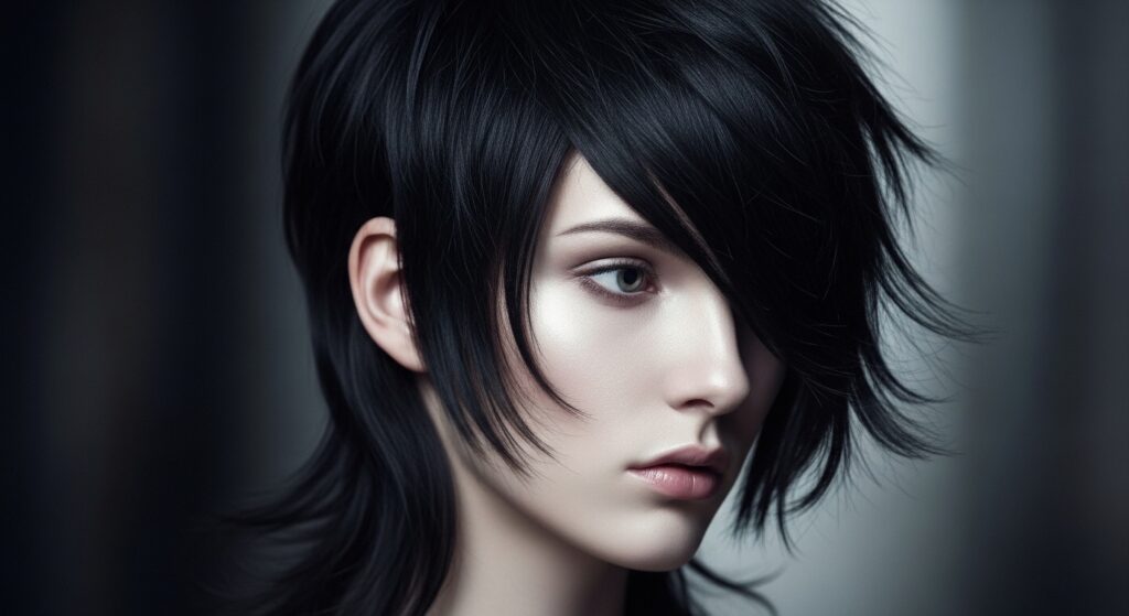 It prevents the look from becoming too harsh. Pair it with a deep side part and dark color for that poetic, mysterious vibe. It’s a pinnacle of romantic goth hairstyles.