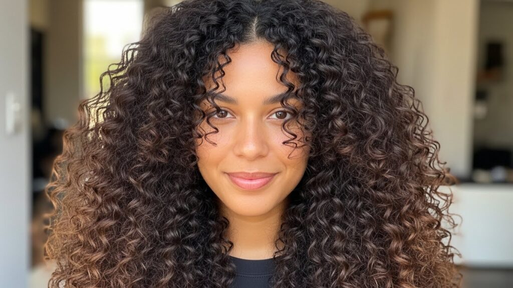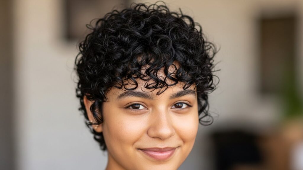 Perhaps the most universally flattering option, curly curtain bangs are a soft, face-framing dream. Parted down the middle, these bangs blend seamlessly into the rest of your hair, creating a beautiful, retro-inspired frame for your features. They work with virtually every curl type and are low-commitment, as they grow out gracefully.