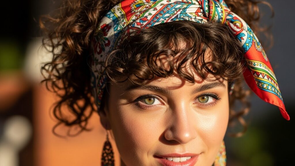 This isn’t just a style, it’s a styling hack. On days when your bangs are in the “in-between” phase or you just want them off your face, embrace accessories. A silk scarf, a stylish headband, or a couple of decorative clips can push your bangs back beautifully while creating a whole new look.