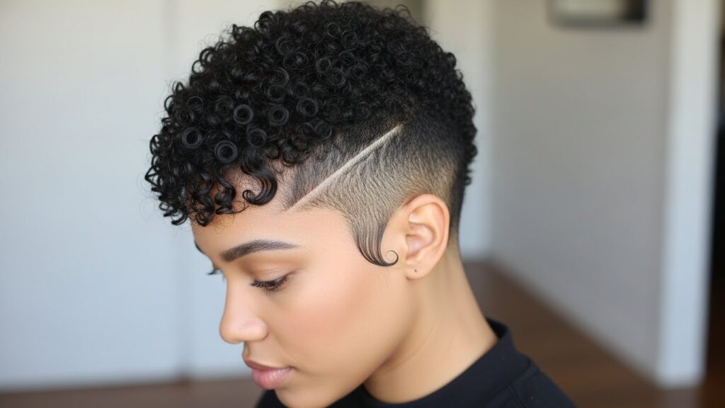 On a Teeny Weeny Afro (TWA), bangs are created by leaving slightly longer length in the front during the cut. This creates a gentle, rounded frame for the face that highlights your features and adds a touch of softness to the powerful, short style.