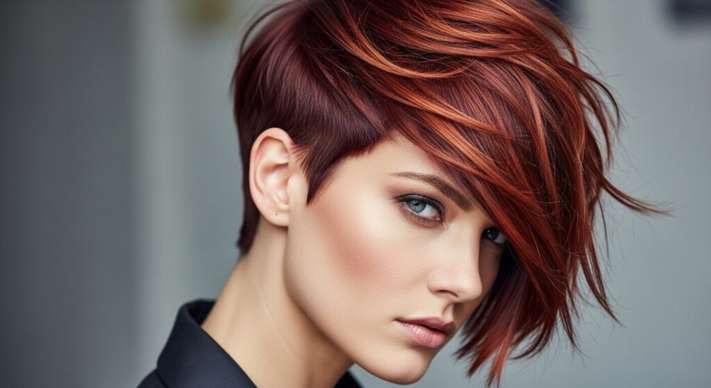 Short hair can have movement too! An asymmetrical layered pixie adds depth and edge. Longer pieces on top blend seamlessly with shorter sides for a dynamic, textured finish.