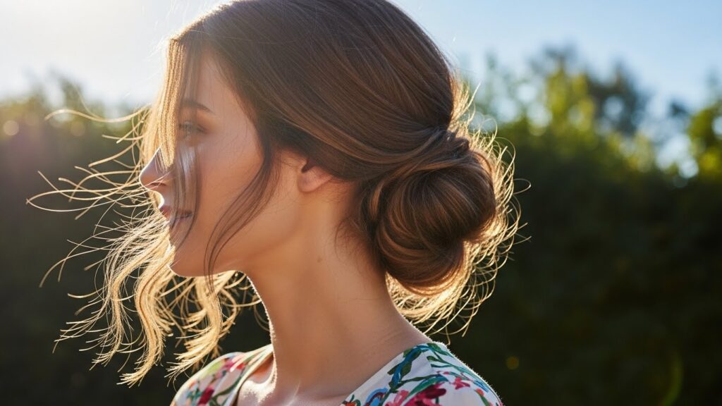 Yes, you can still put your lob up! The “lob bun” is one of the cutest and easiest summer updos. Because of its length, you get a perfectly imperfect, slightly messy bun with tendrils naturally escaping around your face and neck. Simply twist your hair into a low or high bun, secure it with a coil-less hair tie or scrunchie, and gently pull out a few pieces around your face and at the nape of your neck. It’s a lifesaver on scorching days and looks intentionally chic.