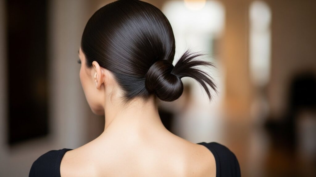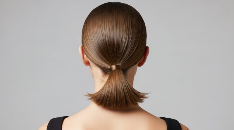 Another fantastic way to wear your lob up is in a sleek low ponytail. The lob length creates a perfect, perky little tail. Smooth all your hair back, secure it at the nape of your neck, and wrap a small piece of hair around the elastic to conceal it. For a summer-ready detail, gently pull the ponytail up and over the elastic to create a “flip” for added volume. It’s clean, chic, and maximizes neck-cooling.