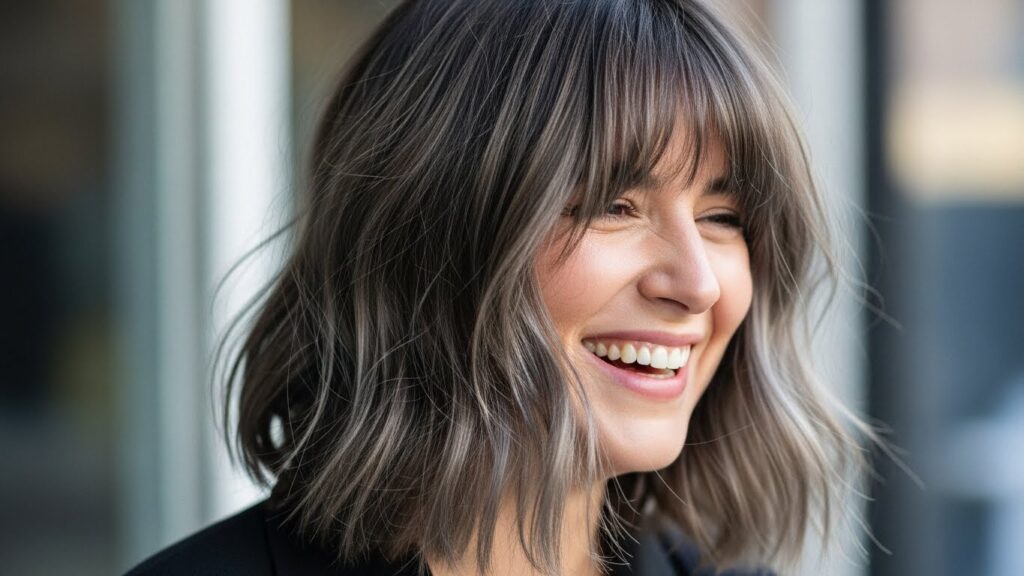 Bangs are a phenomenal tool for a youthful refresh, and curtain bangs are the most forgiving and flattering option. They part in the middle and gracefully frame the eyes and cheekbones, softening the forehead without the high maintenance of full fringe. Paired with a lob, they create a cohesive, French-girl-inspired look that’s both timeless and trendy.