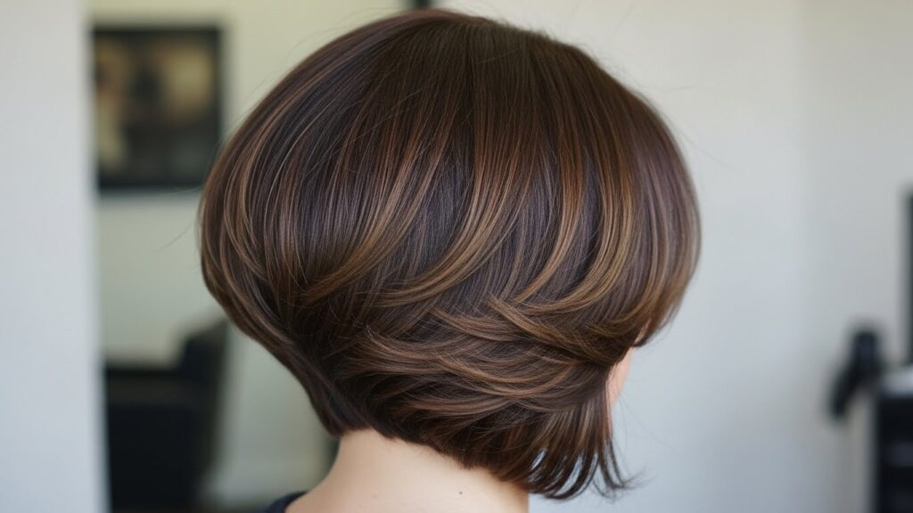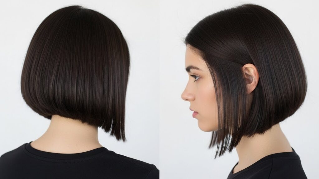 A close cousin to the angled lob, the inverted lob focuses on creating stacked layers at the back for dramatic lift and volume. The back is shorter and rounded, while the front remains longer. This is a bold, architectural cut that’s perfect for the woman who wants a defined, set-and-forget style with lots of body at the crown.