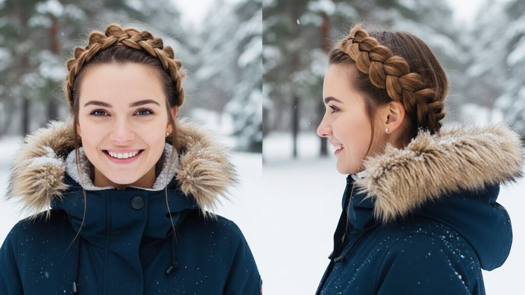 Channel your inner winter queen with a Dutch braid crown. This style involves two braids—Dutch (or inside-out) braids—that start at your temples and wrap around your head like a crown. It’s exceptionally protective, keeping all your hair completely contained and shielded from the elements. It’s perfect for outdoor winter activities, windy days, or simply adding a touch of fairy-tale charm to your everyday ensemble.