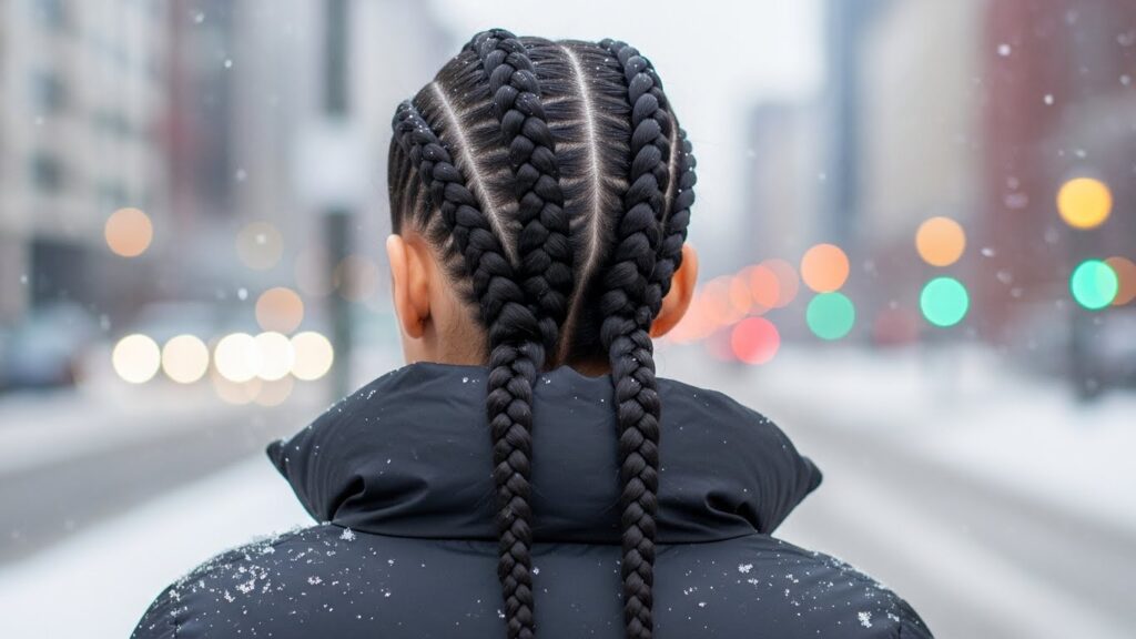 Don’t let the name fool you—boxer braids are for everyone. These tight, sleek double French braids starting at the hairline are the ultimate protective and active style. They lay flat against the head, making them ideal under snug beanies and hoods. They’ll keep your hair perfectly in place during winter sports, commutes, or simply running errands on a blustery day.