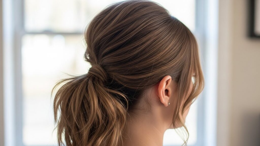 If a sleek ponytail feels too harsh, opt for the loose, textured version. After securing your ponytail, gently backcomb or twist small sections for added volume and a lived-in feel. Pull the ponytail slightly looser at the crown for a relaxed effect. This style is forgiving, easy, and manages static by embracing a bit of controlled chaos.