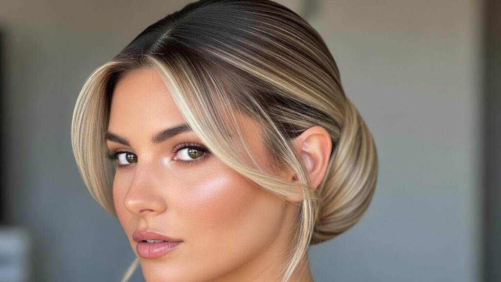 The sleek low bun is the epitome of elegant simplicity. To prevent it from looking too severe, pair it with a soft, face-framing balayage. The highlights around the face will soften your features and add a touch of brightness, while the rest of the hair is pulled into a tight, polished bun. This look is perfect for formal events, as it’s chic, professional, and subtly showcases your color.