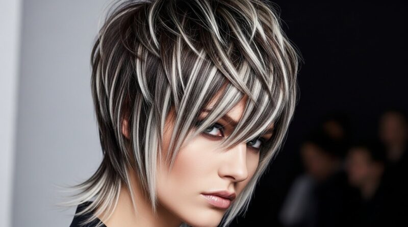 The modern shag is all about rebellious texture and lived-in cool. Chunky, piecey highlights complement this cut perfectly. These slightly thicker, more defined lightened pieces work with the shag’s heavy layers and fringe to accentuate the choppy texture. The contrast creates a dynamic, eye-catching look that’s full of attitude and effortless style, reminiscent of 70s rock stars.