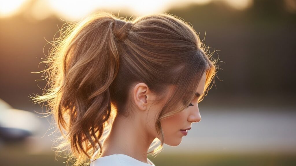 Ditch the low, tight pony. A high ponytail, placed at the crown of your head, has an immediate face-lifting effect. Keep it loose at the front; gently pull out a few face-framing pieces and wispy hairs around the hairline. This style highlights your bone structure and feels athletic and chic.